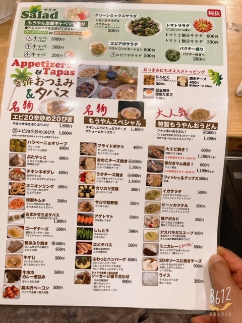 ⚫サラダ⚫おつまみ⚫かもあぶり焼き⚫特製もうやんおうどん⚫エビ20辛炒め⚫もうやんスペシャル⚫もうやん特製焼き⚫しめのカレー⚫デザート